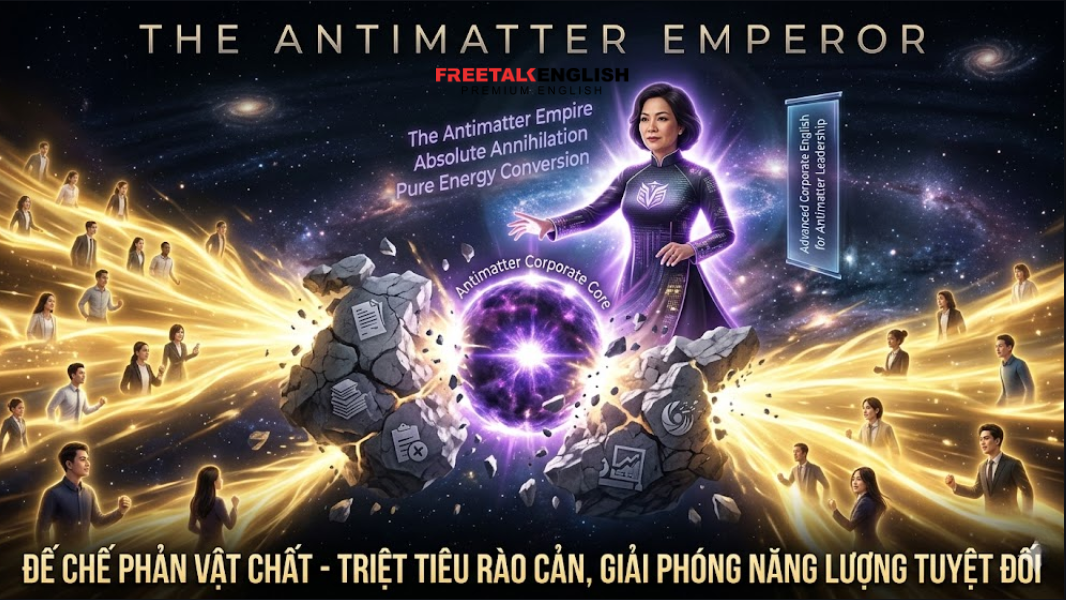 “Bằng việc thiết lập Đế chế Phản Vật Chất, và dùng một khóa học tiếng Anh cho doanh nghiệp làm máy gia tốc…”