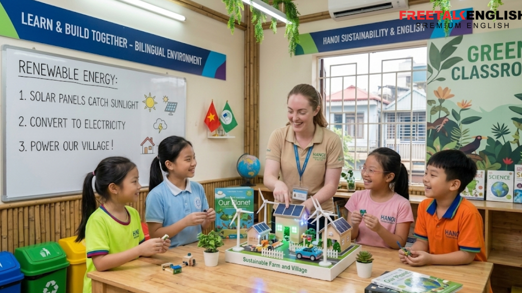 Các trung tâm tiếng Anh cho trẻ em Hà Nội luôn chú trọng giáo dục ý thức bảo vệ tự nhiên. Học ngoại ngữ về môi trường giúp bé trở thành công dân toàn cầu ưu tú.