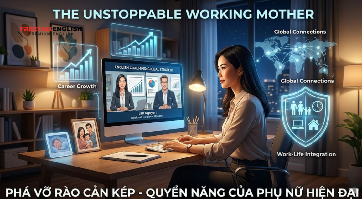 Phá Vỡ “Rào Cản Kép”: Chiến Lược “Tiếng Anh Online Cho Người Đi Làm” Dành Riêng Cho Phụ Nữ Hiện Đại & Mẹ Bỉm Sữa Tái Khởi Động Sự Nghiệp (2026)